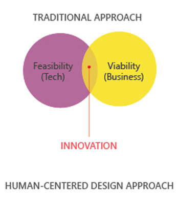 Traditional business solution approach focused only on two main aspects 1) Feasibility (technical): -A feasible solution, building on the strengths of your current operational capabilities. 2) Viability (business): -A profitable solution, with a sustainable business model. These two metrics solve the problem in a very reasonable way. Moreover, this approach fails to uncover the user’s unmet needs, problems, and insights. Design Thinking, on the other hand, is a human-centered design approach that starts with understanding the needs of the humans (desirability) and bringing the viability and feasibility aspects together. 1) Desirability (humans): -A desirable solution, one that your customer really needs 2) Feasibility(technical): -A feasible solution, building on the strengths of current operational capabilities. 3) Viability (business): -A profitable solution, with a sustainable business model. Design thinking incorporates analytical, synthetic, divergent and convergent thinking to create a wide number of potential solutions.